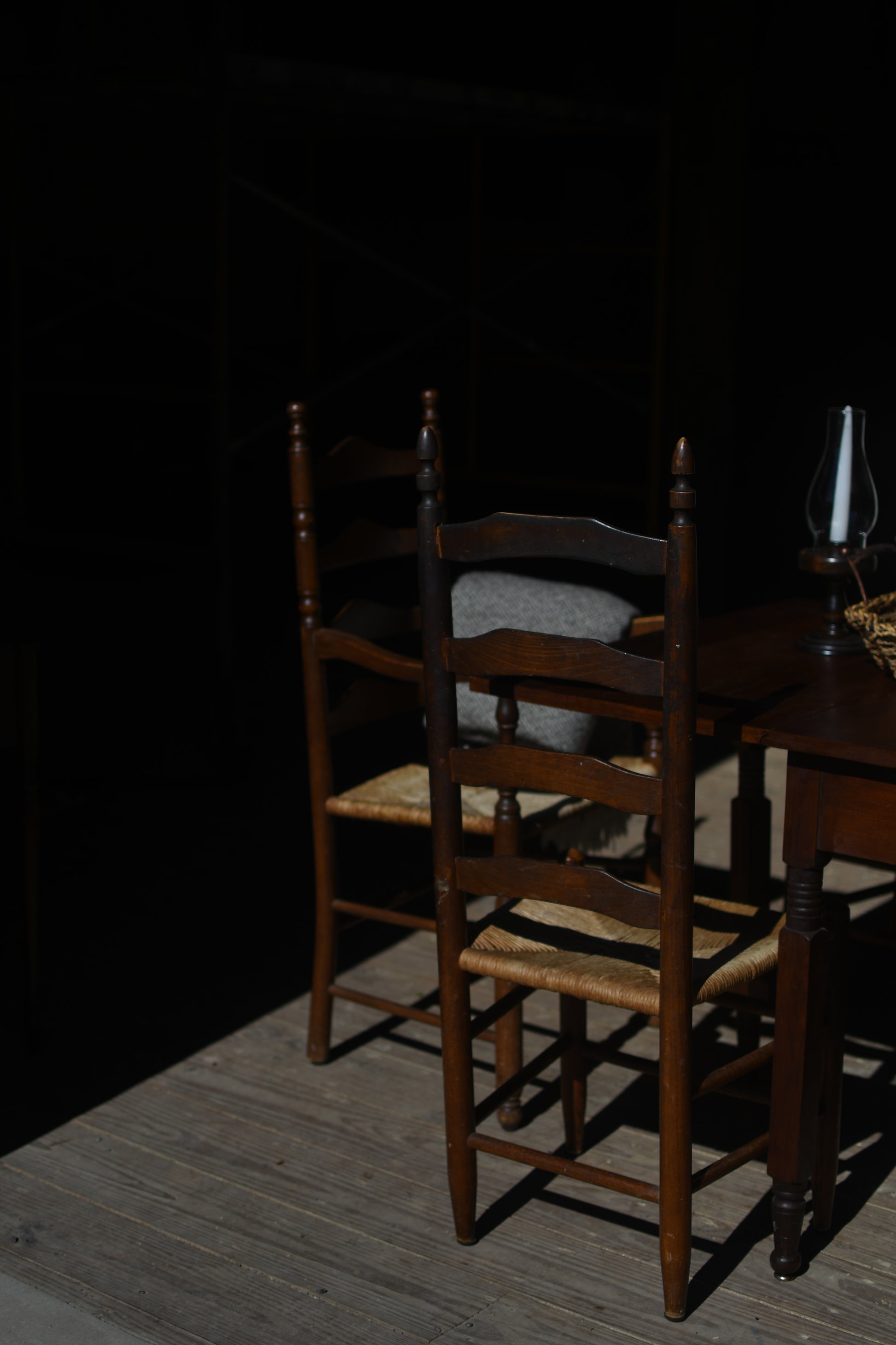 Two chairs have been recently rewoven, showing slight differences in color compared to the others.